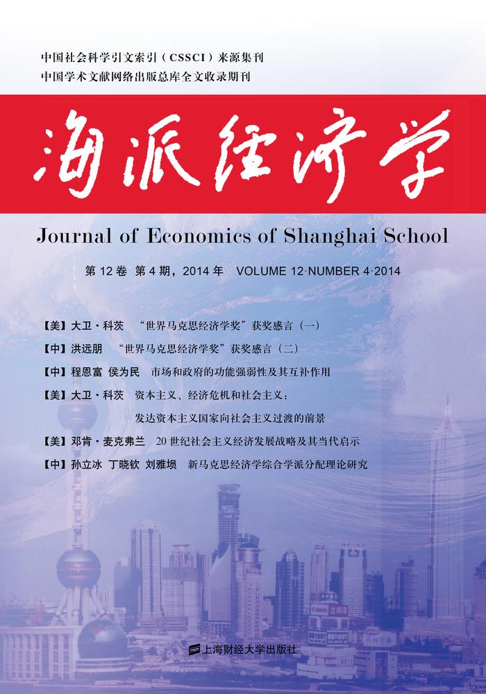 致 词“世界马克思经济学奖”获奖感言(一) 【美】大卫•科茨(1)“世界马克思经济学奖”获奖感言(二) 【中】洪远朋(4)论 文市场和政府的功能强弱性及其互补作用 【中】程恩富 侯为民(8)资本主义、经济危机和社会主义:发达资本主义国家向 社会主义过渡的前景 【美】大卫•科茨(16)可持续发展社会主义的六个基本要素 【美】大卫•佩纳(35)20世纪社会主义经济发展战略及其当代启示 【美】邓肯•麦克弗兰(55)东北亚的马克思主义传统研究 【日】大西广(64)新马克思经济学综合学派分配理论研究 【中】孙立冰 丁晓钦 刘雅埙(74)次贷危机与马克思主义地租理论 【德】理查德•科里尔 恩斯特•赫尔佐格(84)经济波动与国际金融结构修复 【南非】帕特里克•邦德(95)金融危机在欧元区是如何深化的 【比利时】亨利•霍本(128)全球产业政策:国际政治经济斗争的前沿 【英】珍妮•克莱格(148)印度民族国家、社会服务市场化及民生不稳定 【印】巴尔温德•辛格•提瓦纳 帕拉吉特•辛格(165)综 述增长、发展与社会公正 ——世界政治经济学学会第九届论坛综述 【中】郭艳青 丁晓钦(182)学会文件2014年“世界马克思经济学奖”评选结果 (193)2014年“21世纪世界政治经济学杰出成果奖”评选结果 (194)世界政治经济学学会第九届论坛宣言 (195)资本主义的不均衡发展与危机 ——世界政治经济学学会第十届论坛征文函 (197)